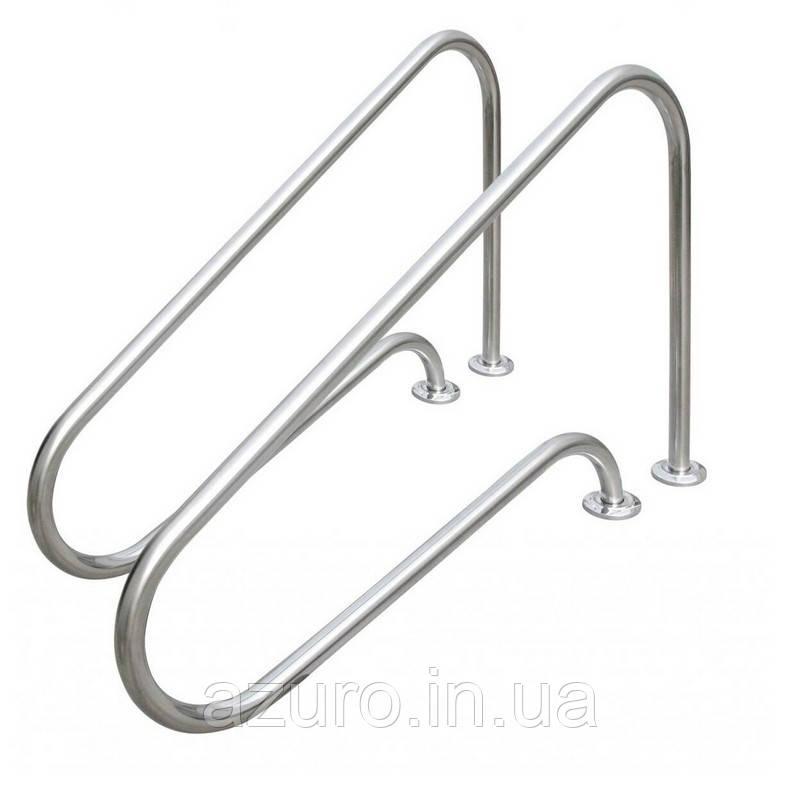 Поручень для басейну Emaux ARG-F. Являє собою додаток для римських сходів та інших варіацій реалізації сходів для басейну. Полегшує вихід з басейну, і спуск у воду. Можна використовувати в приватних і комерційних басейнах. Виготовлений з полірованої нержавіючої сталі марки AISI-316, стійкої до помірної концентрації солі у воді. Кріпиться до борту за допомогою фланців. У комплекті 2 поручні.